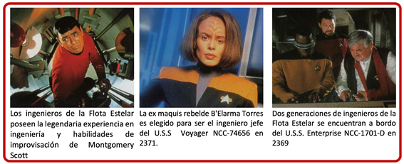 Los ingenieros ocupan uno de los papeles más vitales en la tripulación de la Flota Estelar. El buen funcionamiento de cualquier nave estelar o base estelar depende de sus esfuerzos dedicados, y a menudo se les requiere
